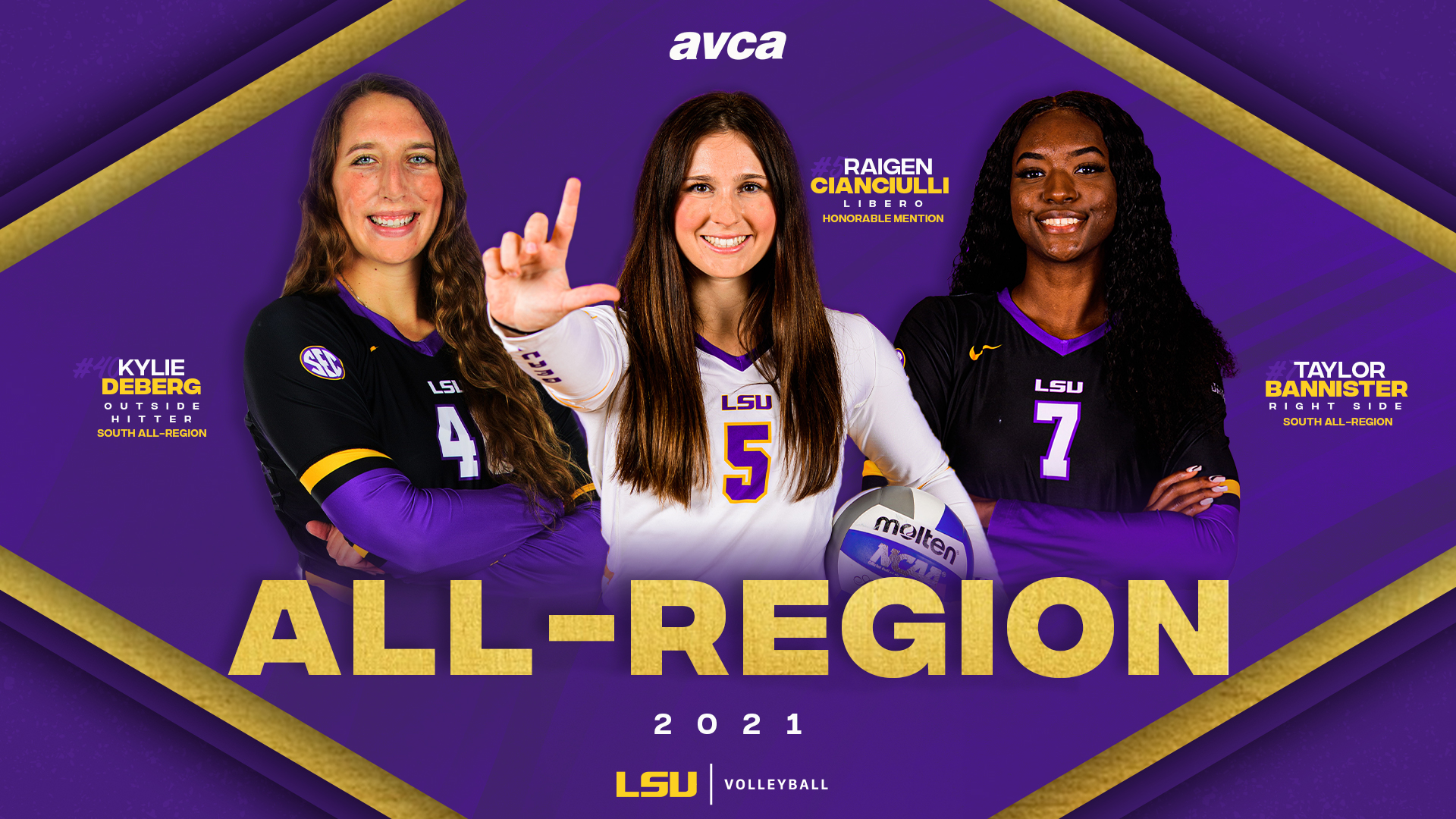 LSU volleyball has three players chosen to 2021 AVCA All-Region team