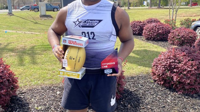 Three-star offensive lineman Williams Sanders of Brookwood, Alabama was named MVP of the offensive line during the Rivals Camp in March. PHOTO COURTESY: William Sanders Twitter