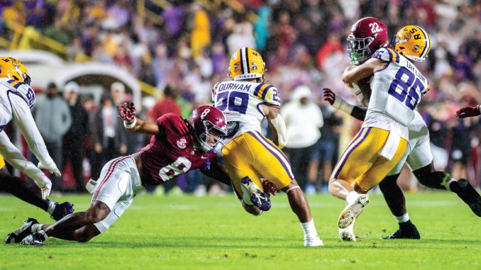LSU had a plan, too. Part of that was to run the ball, which it did effectively early, gaining 55 yards on five carries for an 11-yard average. That was better than Alabama’s at the time, which was 64 yards on 12 carries for a 5.3-yard average. But LSU settled for field goals. Bama took touchdowns and led 21-6 at halftime.