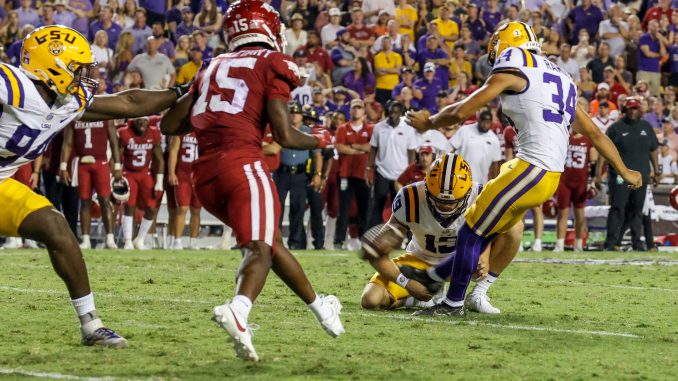 LSU (3-1, 2-0 in SEC) rallied from a halftime deficit and scored on six consecutive drives, including four in the second half, with the game-winning points coming on Damian Ramos’ 20-yard field goal at the end of a 5-plus-minute drive with five seconds to play before an announced Tiger Stadium crowd of 99,648.