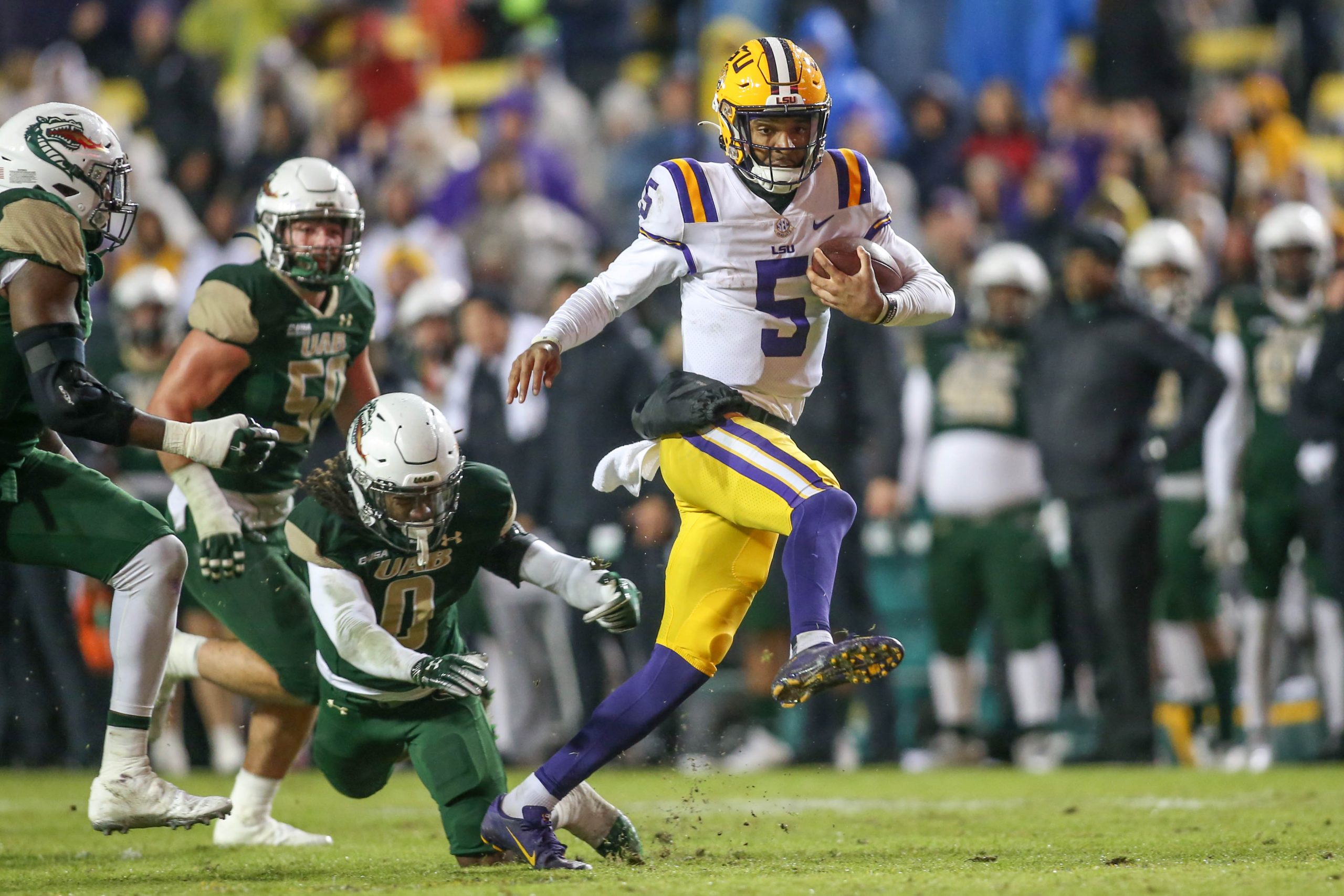 LSU forced a turnover on down when Grainger threw incomplete on fourth-and-seven on an incompletion from LSU’s 30 into the end zone with 2:35 showing.
