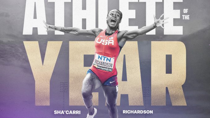 INDIANAPOLIS – Former national champion sprinter Sha’Carri Richardson of LSU was named the 2023 Jackie Joyner-Kersee Female Athlete of the Year the USATF announced Thursday.