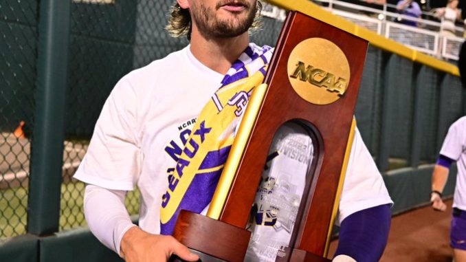 LSU center fielder Dylan Crews helped the Tigers secure the 2023 national championship last week over Florida. PHOTO BY: LSU athletics