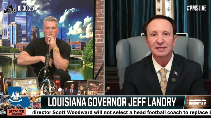 Well, on Thursday, present Louisiana Governor Jeff Landry was on the Pat McAfee Show on ESPN – one of the most popular talk shows in America today, which usually does not feature governors.