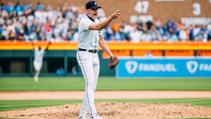 Former LSU standout pitcher Alex Lange was on the mound to close out Detroit's 2-0 victory in a combined no-hitter last Saturday in Detroit. PHOTO COURTESY: Detroit Tigers Twitter