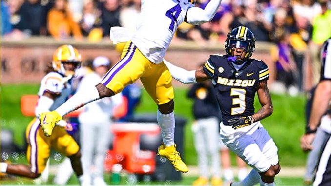 The No. 23 Bayou Bengals also received a gutty performance from injured quarterback Jayden Daniels to rally from a first-half deficit and defeat No. 21 Missouri, 49-39, at Faurot Field on Saturday.