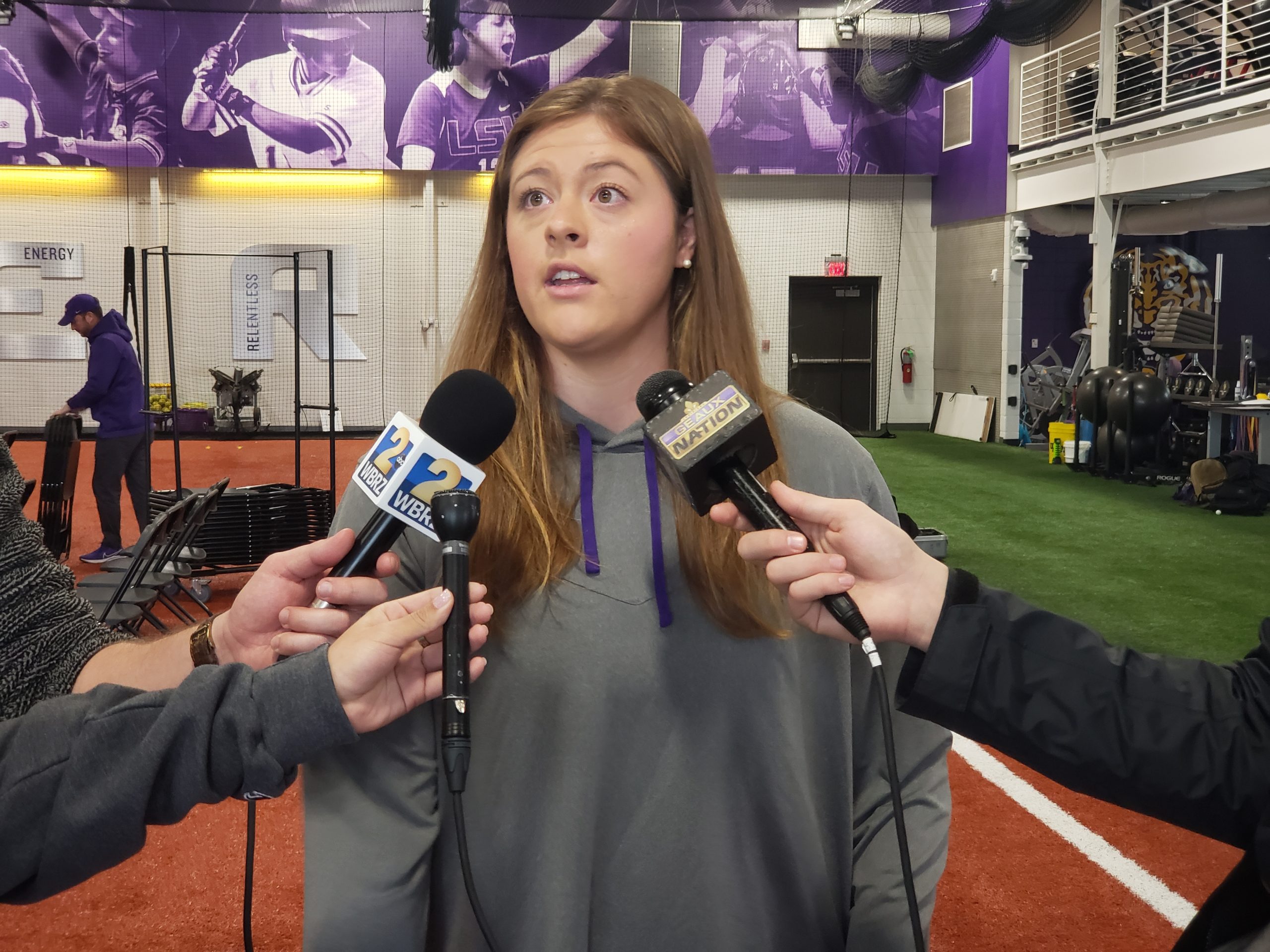LSU scored three runs on two hits to open the game. With two runners in scoring position, Edwards hit a bloop single to bring in the game’s first run, and Redoutey hit a three-bagger in the left-center gap to bring home two more runs, giving LSU a 3-0 lead. In the second inning with the bases loaded, Bergeron singled through the left side to increase the margin, 4-0 after two frames.