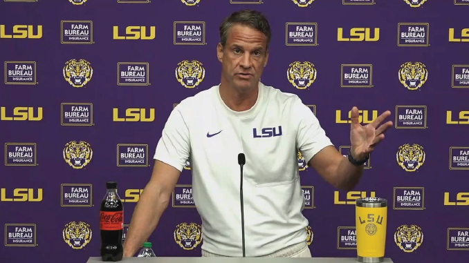 LSU football coach Lane Kiffin explained one of his best recruiting strategies at a press conference on Wednesday at LSU. (LSU photo).
