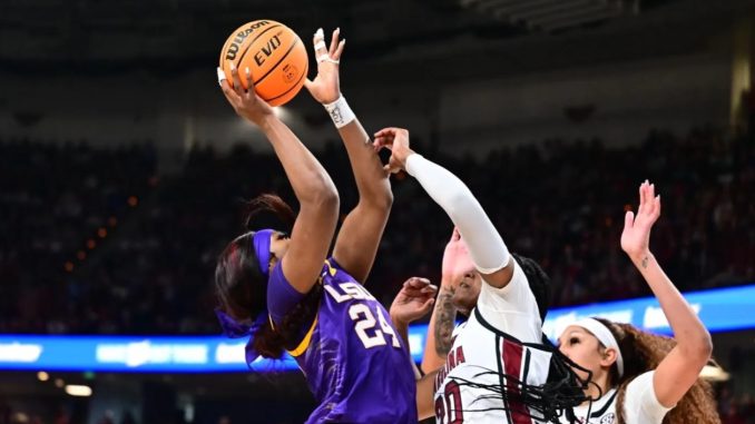 As defending national champions and after a successful offseason bringing in the top-ranked freshmen class and the nation’s top two players in the transfer portal, LSU entered the season ranked No. 1. With a lot of new pieces, LSU dropped its season opener against an experienced Colorado team before winning the remainder of its non-conference games, including a 2023 Final Four rematch over No. 9 Virginia Tech.