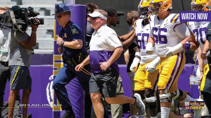 TigerRag.com’s Audible podcast for May 9, 2024 hosted by Jake McMains with Moscona, Palermo, Horne, and Brian Kelly talking to Jacques Doucet of WAFB-TV in Baton Rouge. Meanwhile, LSU football is still hunting for defensive tackles where it failed to hook another one on Wednesday when Kent State’s CJ West, who had an offer from BK and the Tigers ventured committed elsewhere.