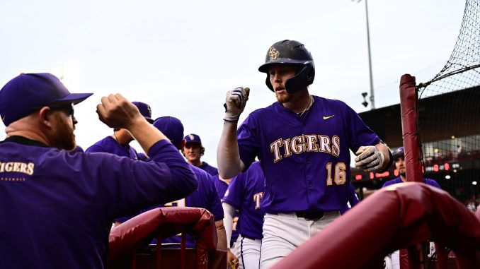 Ethan Frey, LSU’s leading hitter at .370, continued as such by going 3-for-5 with a two-run home run to right field in the third inning for a 3-0 lead, giving him 11 homers on the season. Jared Jones led off the third inning with a solo home run for a 1-0 lead. Jones added a two-run home run in the eighth for a 7-1 advantage, giving him a team-high 18 home runs on the season.