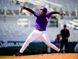 He posted and excellent relief outing versus UCLA in the College World Series, earning the win and limiting the Bruins to two runs on four hits in four and a third innings with no walks and five strikeouts. Evans earned the save against Arkansas in LSU’s CWS opener, working an inning with no runs on one hit and one strikeout.