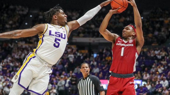 LSU’s bench scored 30 points to 13 for Arkansas.