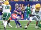 Green, a 6-foot-7 true freshman who also will play basketball this season for the Tigers, was thrust into a starting role for this game with starter Mason Taylor opting out to prepare for the NFL Draft. He riddled the shorter and slower Bears’ defenders throughout the day, catching six passes for 53 yards. His 1-yard TD catch put the Tigers up 28-7 with 8:46 still to play in the second quarter.