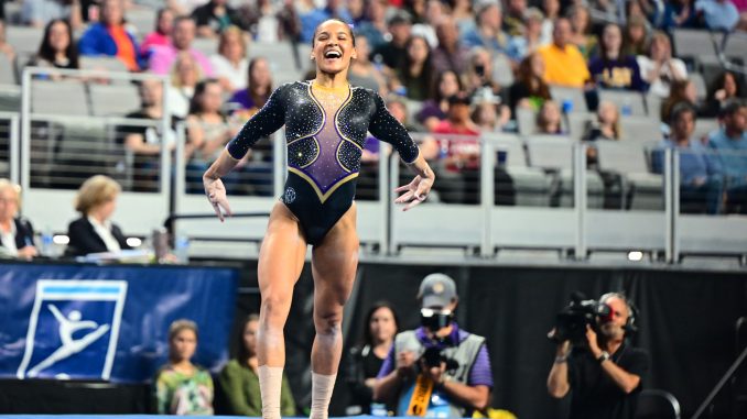 LSU’s last event was floor and the Tigers showed why they were the top ranked floor squad in the country. Every single score that counted for LSU was 9.9375 or higher. McClain, Bryant and Kiya Johnson all scored 9.9375. KJ Johnson scored a 9.9500 and Aleah Finnegan recorded a 9.625. LSU finished with a 49.7250 on the floor.