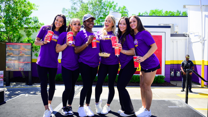 LSU gymnastics worked a shift at Canes to celebrate its national championship win. PHOTO BY: Canes Social Media