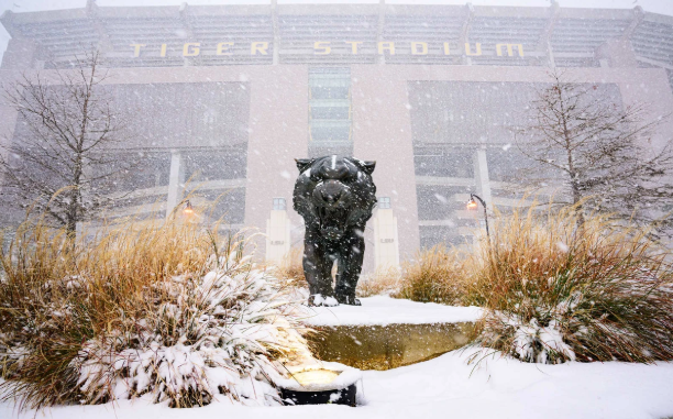 Tiger football weather struck the LSU campus, Baton Rouge and surrounding areas in record numbers on Wednesday, and it was still sticking as of Thursday morning amid major melting.