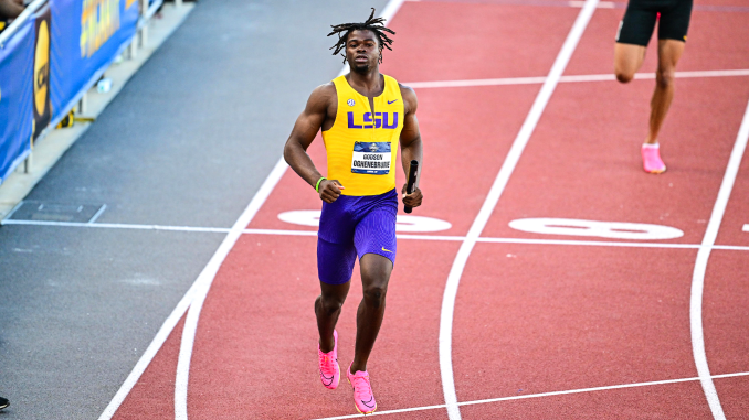 Godson Oghenebrume clocked a time of 10.02 seconds to earn his second First Team All-American nod of the day and his fourth since last season. PHOTO BY LSU ATHLETICS