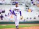 After LSU had gone scoreless for two stanzas, the Tigers loaded the bases on walks in the fourth. Designated player McKaela Walker walked in a run, and Hodge hit her first extra-base hit of the season, a base-clearing triple to increase LSU’s margin to 10-0.