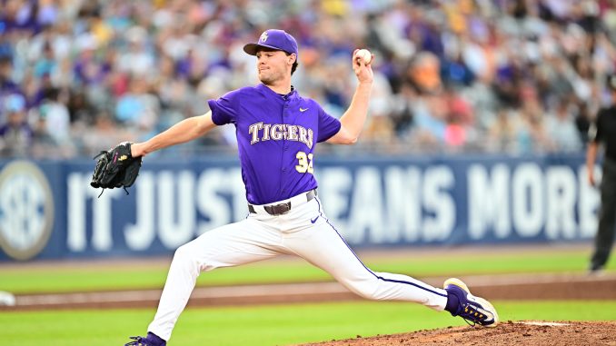Ethan Frey hit his 12th home run – a two-run shot to left-center field in the bottom of the third inning to give LSU a 4-0 lead. Frey’s double to right field put the Tigers up 2-0 in the first inning.