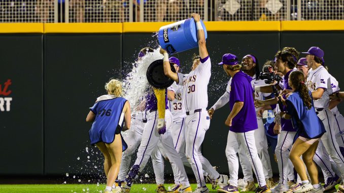 LSU is flying high in Omaha … with a layover until Monday or Tuesday.https://t.co/1nekuovyKw