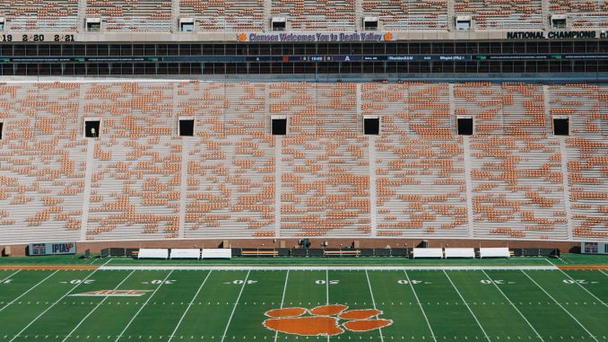 Memorial Stadium at Clemson, which is also known as "Death Valley" like Tiger Stadium at LSU, awaits the LSU Tigers for their season opener a week from Saturday night. (Clemson photo).