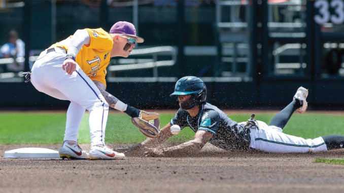 OMAHA, Nebraska – Daniel Dickinson plays second base for LSU as Warren Morris did three decades ago.