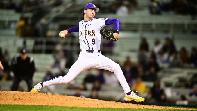 “Closing last weekend was probably one of the greatest moments of my life,” he said of striking out Nebraska hitter Cayden Brumbaugh looking to end the game in the bottom of the ninth last Saturday with an 11-6 LSU victory at Riders Field in Frisco, Texas. He threw a scoreless, hitless inning.