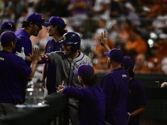 The offense continued its onslaught started in a 12-2, 10-run rule win over Tennessee on Sunday. The Tigers collected 11 hits in all. LSU opened the bottom of the first inning with back-to-back home runs by Derek Curiel and Jared Jones for a 2-0 lead. It was Curiel’s sixth homer and Jones’ team-high 15th. And Ethan Frey ended it with a grand slam home run in the seventh for the the 10-run deficit at 12-2 and three more for good measure. Frey has eight home runs and is not a regular starter.