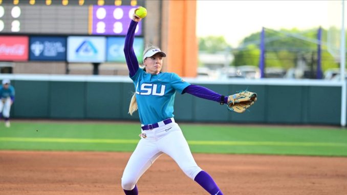 Utility pitcher Kelley Lynch threw a season-high nine strikeouts for her fourth shutout this season, and LSU's 10th shutout this year. PHOTO by LSU Athletics