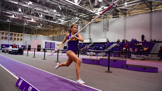 Bayak, a 2021 indoor All-American, won the high jump with a clearance of 5-11.25, and teammate Abigail O’Donoghue finished second (5’ 9.75). Duplantis, the fourth member of her family to compete solely in the pole vault for LSU, won her collegiate debut with a clearance of 11-11.75.