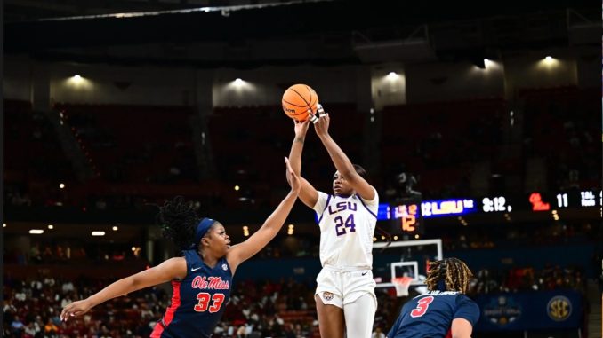 Aneesah Morrow had 12 points and 12 rebounds as LSU put away Ole Miss late to advance to the SEC Championship game and a much anticipated rematch with unbeaten and No. 1 South Carolina on Sunday. PHOTO by LSU Athletics