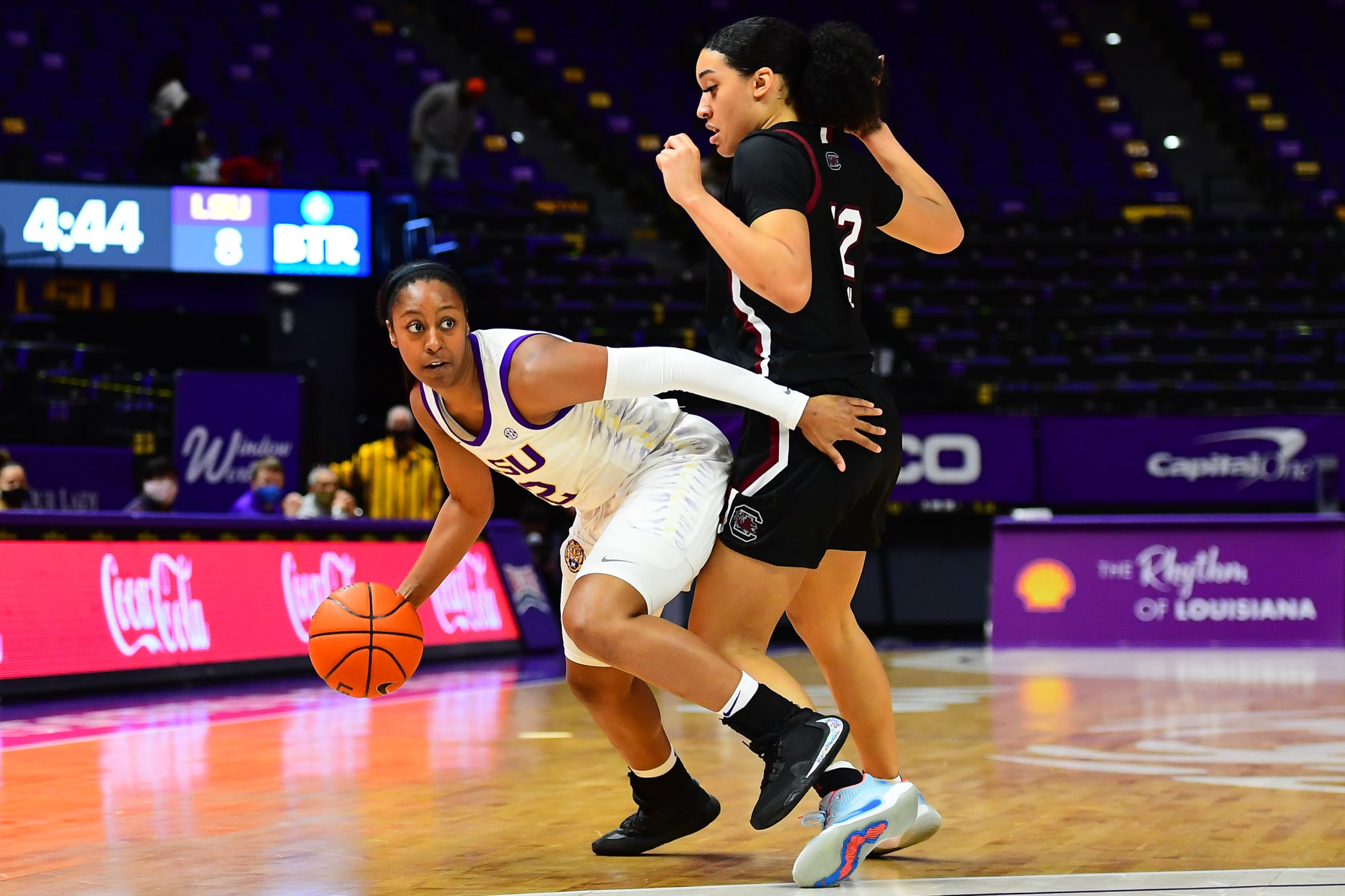 LSU (16-2, 4-1 in SEC) led by 11 points at the end of the first half, but a three-point barrage from Missouri to start the second half brought the Tigers from Columbia within two points with 3:50 left in the third quarter. With tied at 79 with 16 seconds remaining, Alexis Morris missed the go-ahead bucket but the LSU defense stopped Missouri’s Lauren Hansen’s layup from ending the game, forcing overtime.