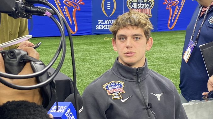 Texas QB Arch Manning drew a huge crowd at the College Football Playoff Media Day before the Longhorns played Washington in the Sugar Bowl last Jan. 1. (Photo By Glenn Guilbeau)