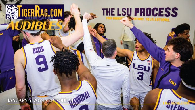 TigerRag.com’s Audibles podcast hosted by Camryn Conner, January 5, 2024. Kim Mulkey’s Tigers erupt behind Flau’Jae Johnson’s spark to win SEC opener by 20 over Missouri, .men open at Texas A&M Saturday on Saturday night. Matt McMahon previews LSU’s progress since Jalen Cook has returned, plus the No. 3 LSU Gymnastics team host Ohio State on Friday night